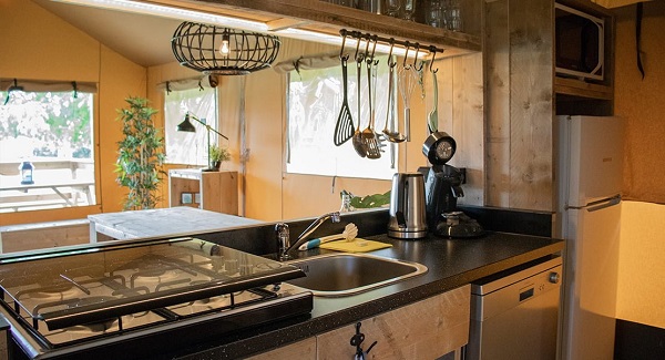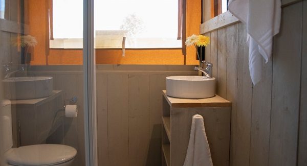 De Lodges zijn voorzien van een luxe badkamer met toilet en douche in de tent, en een spoelbak in de keuken zodat je ook niet meer “buiten” hoeft af te wassen! Verder zijn de tenten voorzien van een Palletkachel zodat het ook aangenaam vertoeven is in het voor en najaar. Kortom, kamperen met de luxe van thuis.