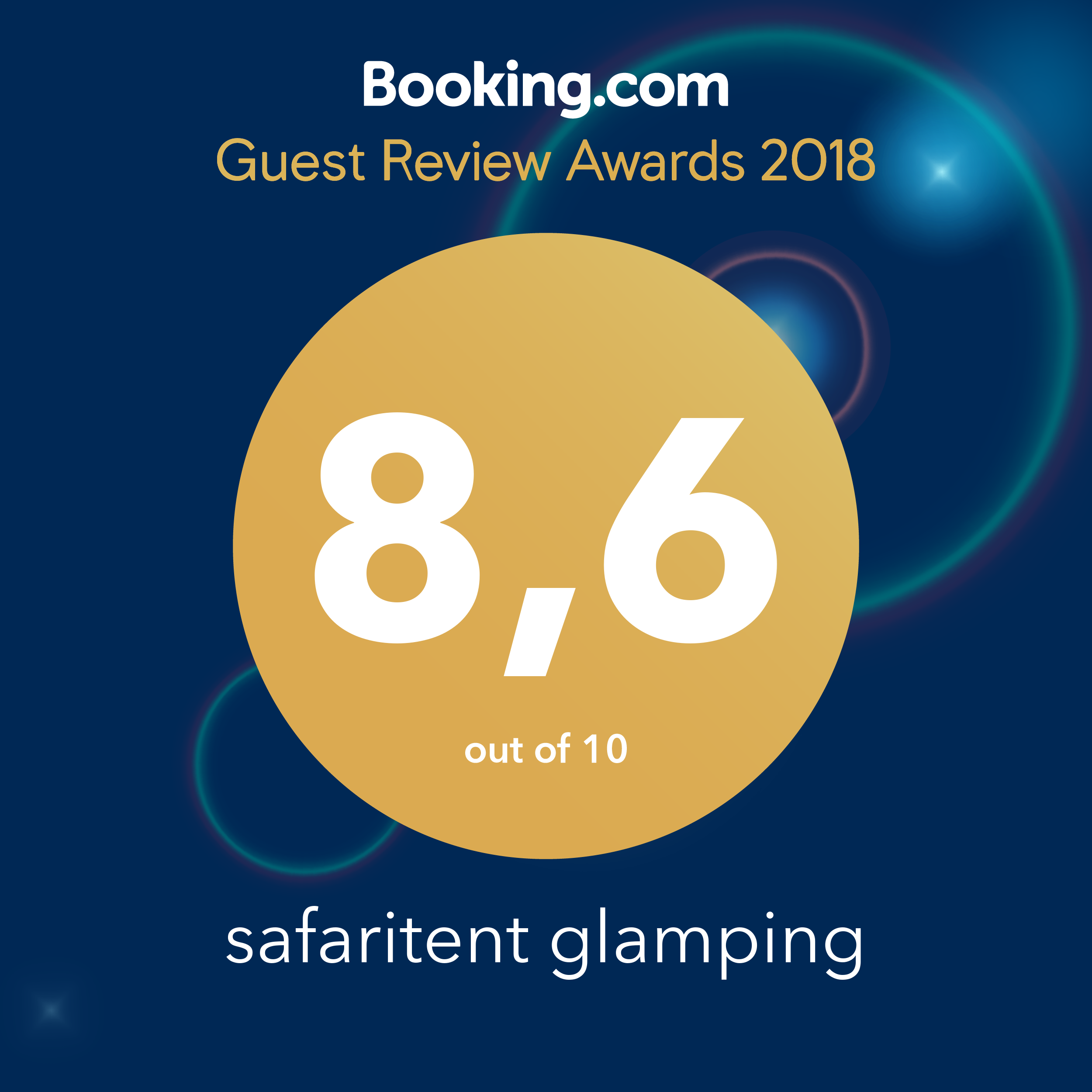 We zijn trots dat we voor onze verhuuraccomodaties (Safari, Jungle en Tipi), van BOOKING.COM (dus van u, onze gasten) de "Guest Review Award 2018" hebben gekregen met een score van 8,6/10.